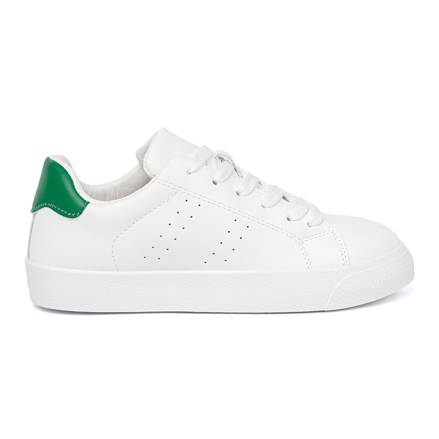 Discover the classic in a modern edition with white sneakers from the Shelvt brand, which perfectly fit into sports and fashion style. These women's sports shoes are a must-have for every occasion. They have an elegant, white color with a green accent, which means that they match both everyday and more casual stylizations.
