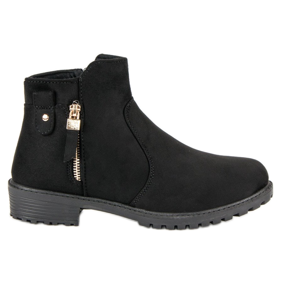 Classic women's ankle boots in black are a great choice for the upcoming fall. Thanks to their minimalist heel, which is only 3 cm, they provide stability and comfort during everyday walks, even on slippery surfaces. These universal shoes, equipped with a side zipper with a decorative padlock, are perfect for both casual and more formal styles.