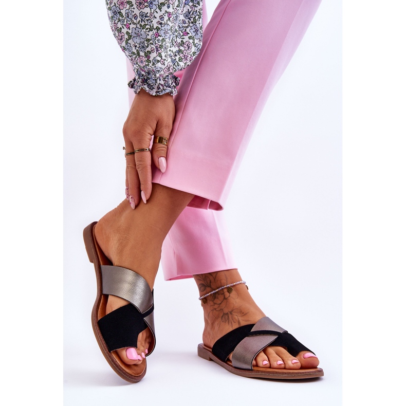 Inna marka Classic Women's Leather Slippers Black Platinum Nancy