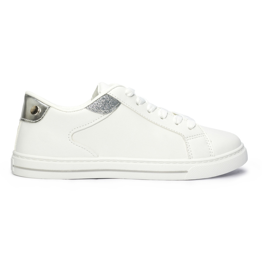Discover classic women's sports shoes in an elegant white shade with the addition of silver, perfect every day. This model, produced by a reputable brand, combines functionality and fashionable design, perfectly fitting into the virtual world of sports fashion.