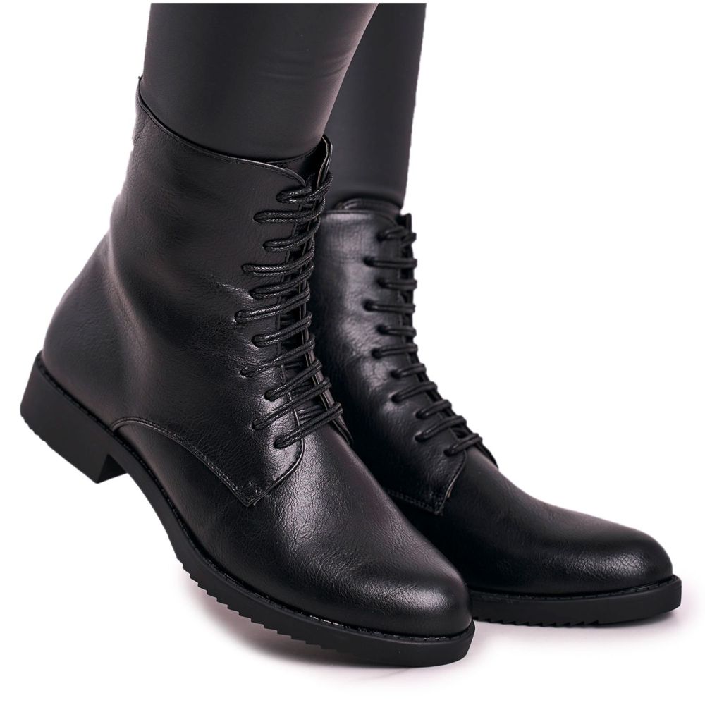 The boots have a lace-up closure and a zipper, which makes them easy to put on and take off. The 15.5 cm shaft height perfectly protects the ankle, and the black color makes this model a perfect match for almost any wardrobe.