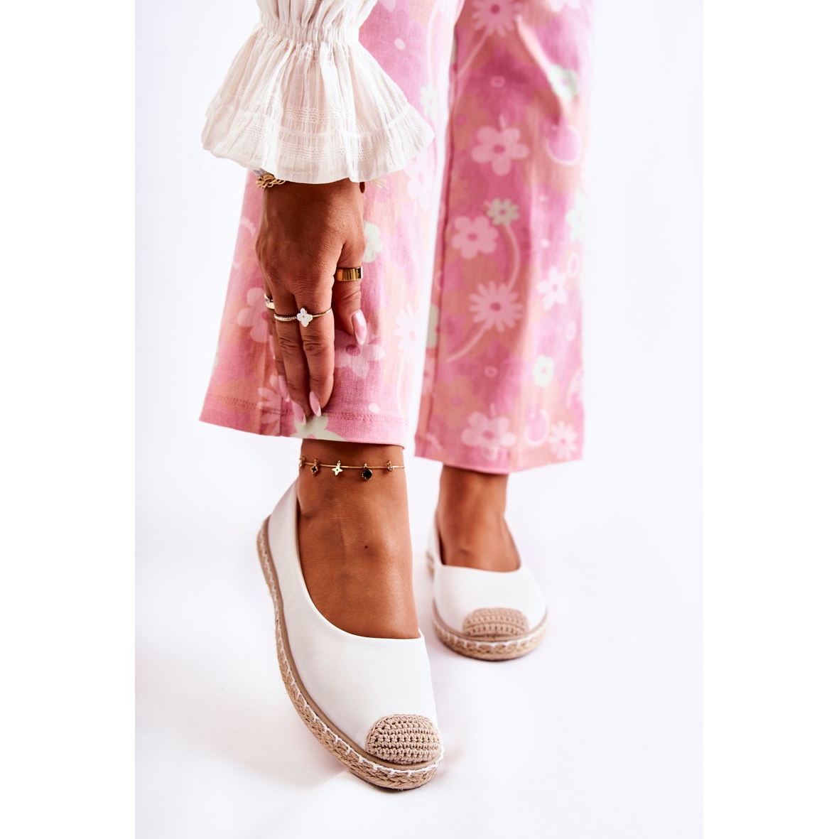 Inna marka Classic Women's White Leather Espadrilles Calabria beige