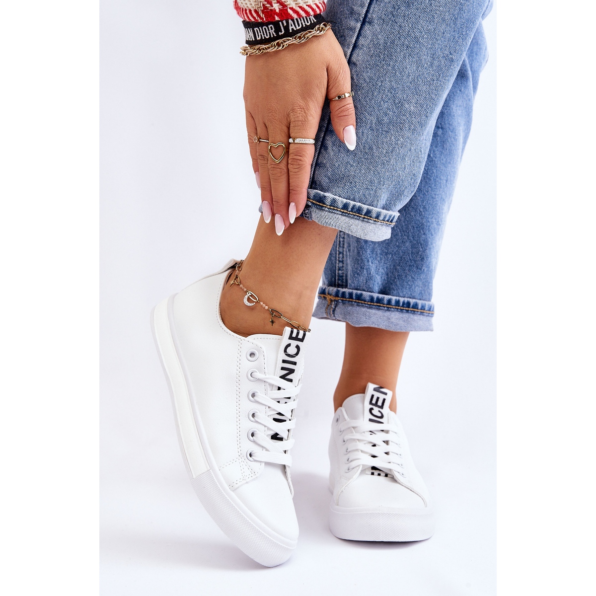 Their minimalist design is enriched with a fashionable detail - a subtle "NICE" inscription placed on the heel and tongue, which adds a unique character to the shoes. Made of high-quality ecological leather, they are not only stylish but also environmentally friendly. A comfortable, material insole and a round toe ensure comfort of wearing all day long.