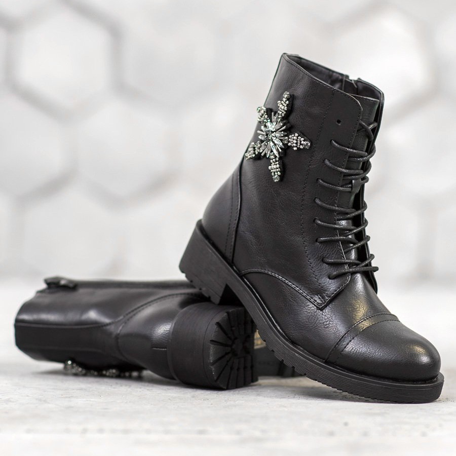We present Classic Workers with Crystals in black from the SHELOVET brand, which combine fashionable design and comfort of wearing. These stylish ankle boots are the perfect choice for women who value comfort and originality in everyday styling.