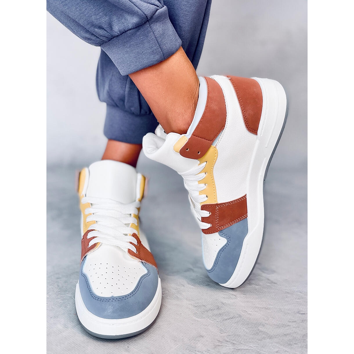 Elegant, universal and comfortable - CLOWSI Blue sports shoes are a proposal for women who value a simple cut and comfort every day. Model, ankle, made of White -colored ecological leather with multi -colored accents. The interior lined with soft fabric provides comfort throughout the day.