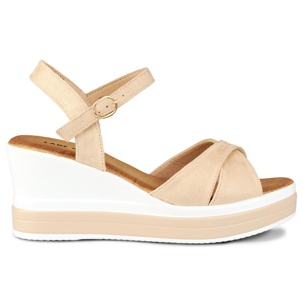We present comfortable beige wedge sandals from the renowned KeeShoes brand, which will be the perfect choice for spring and summer days. Made of high-quality ecological suede, these elegant sandals perfectly fit into current trends, while ensuring comfort of wearing.