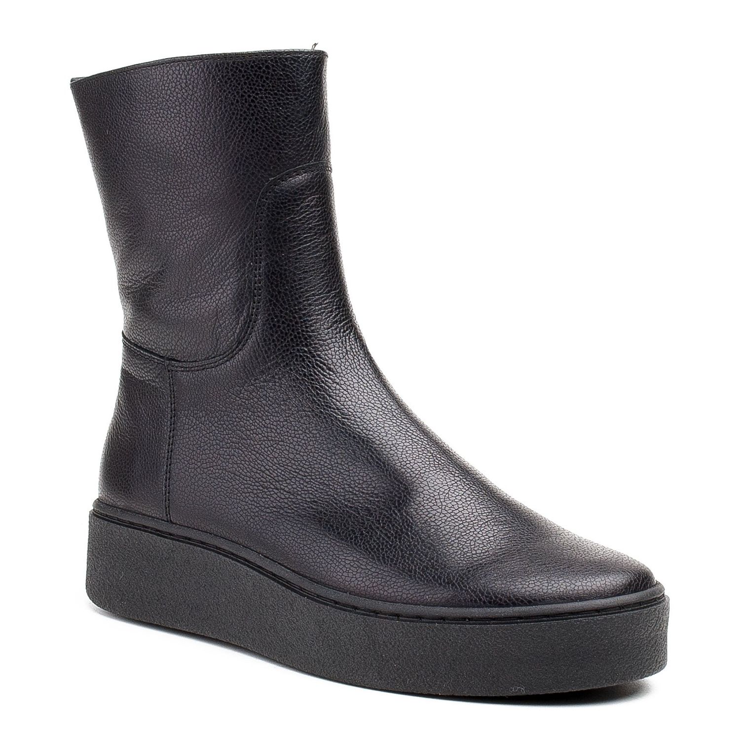 The inside of the shoes is lined with felt, which provides excellent insulation and makes the feet stay at a comfortable temperature all day long. The boots reach up to the ankle, have a total height of 21 cm and an elastic circumference of the upper, which allows for a perfect fit to the foot. Thanks to the round toe and a subtle platform with a height of 4 cm, these shoes are an ideal choice for both everyday and special occasions.