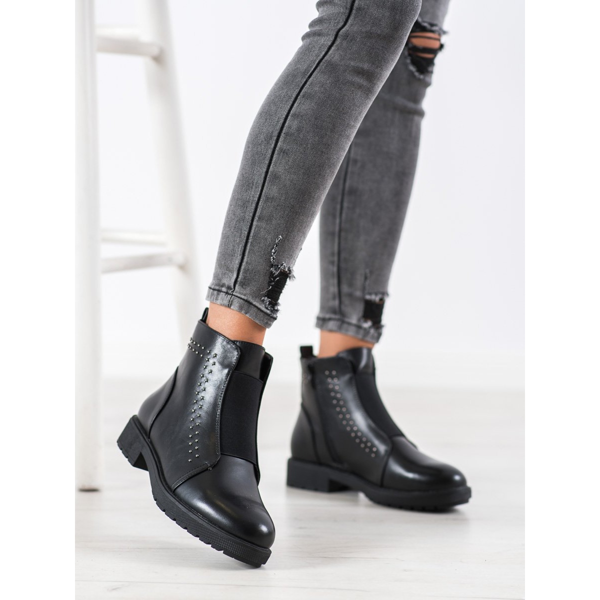 Made of high-quality ecological leather, the boots are characterized by a closed, soft heel and a round toe, which makes them not only stylish but also comfortable to wear. The sole made of synthetic materials with a tread provides excellent grip, making them an ideal choice for everyday use.