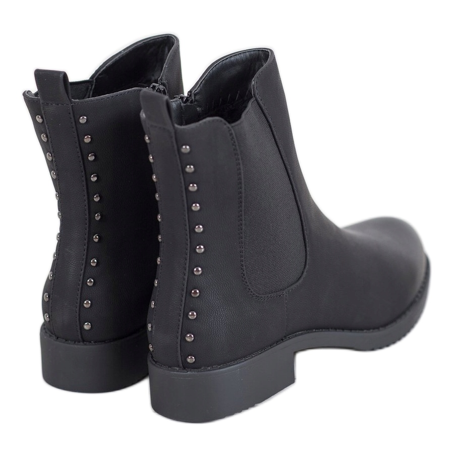These are the perfect shoes for the fall and winter season - black Chelsea boots from J. Star, which combine comfort and a fashionable look. Made of high-quality ecological leather, they are characterized by a upper reaching above the ankle, decorated with stylish rhinestones at the back. Perfect for everyday, they will be a great complement to any casual styling.
