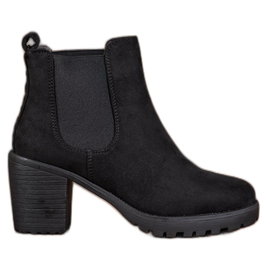 We present classic and extremely elegant SDS women's Chelsea boots that will fit into any wardrobe. Made of high-quality black ecological suede, these shoes combine comfort and style.
