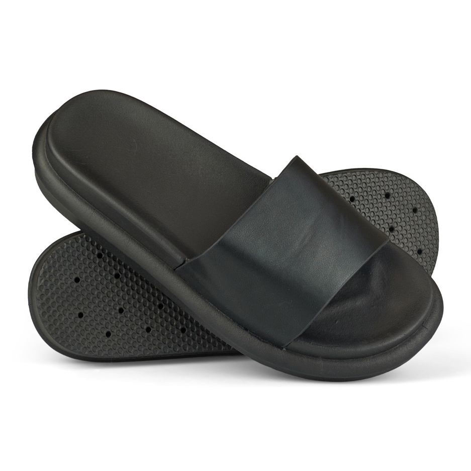 Their minimalist design in elegant black makes them a perfect match for a variety of outfits. The flip-flops feature a slide-on fastening, which allows for quick and easy putting on. The open nose will certainly provide comfort and breathability, which is especially important on warm days.