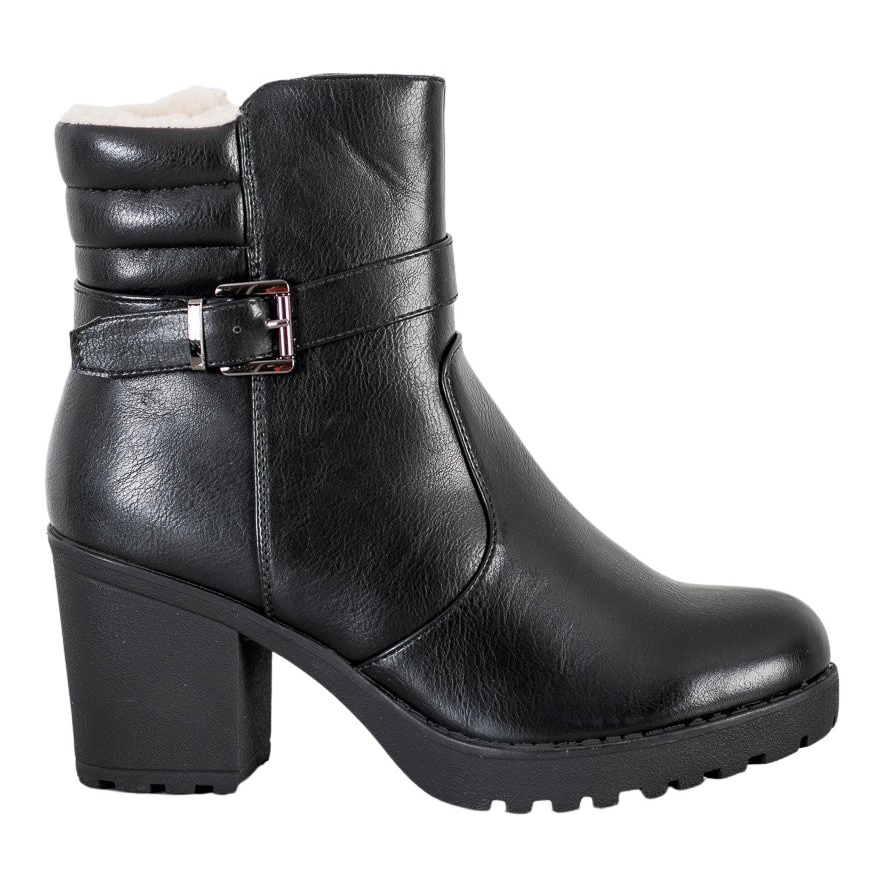 J. Star ankle boots have an 8 cm heel, which will emphasize your figure and provide stability. The high upper reaching above the ankle and the zip fastening make them easy to put on, and the decorative buckle adds a unique character. The interior made of textile materials provides additional warmth, which makes these ankle boots a great choice for cold days.