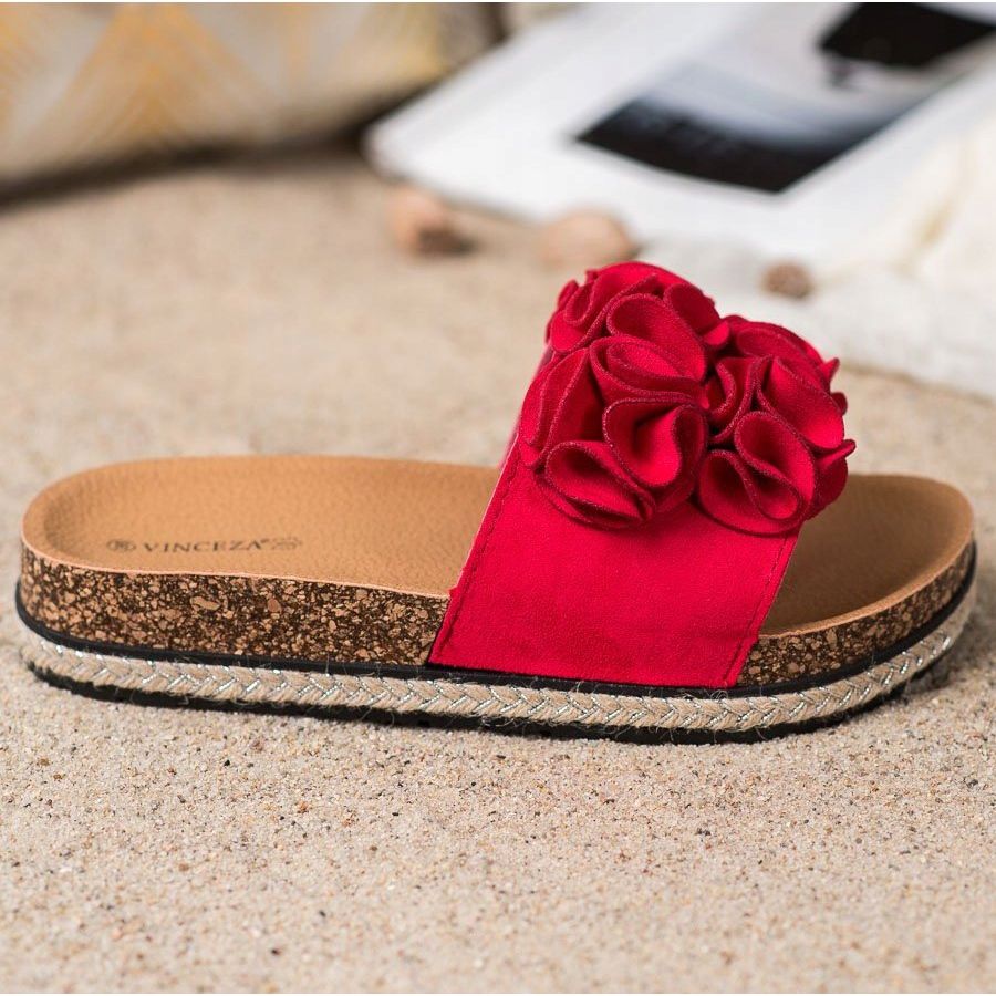 Vinceza Comfortable flip-flops with flowers VINCEZA red