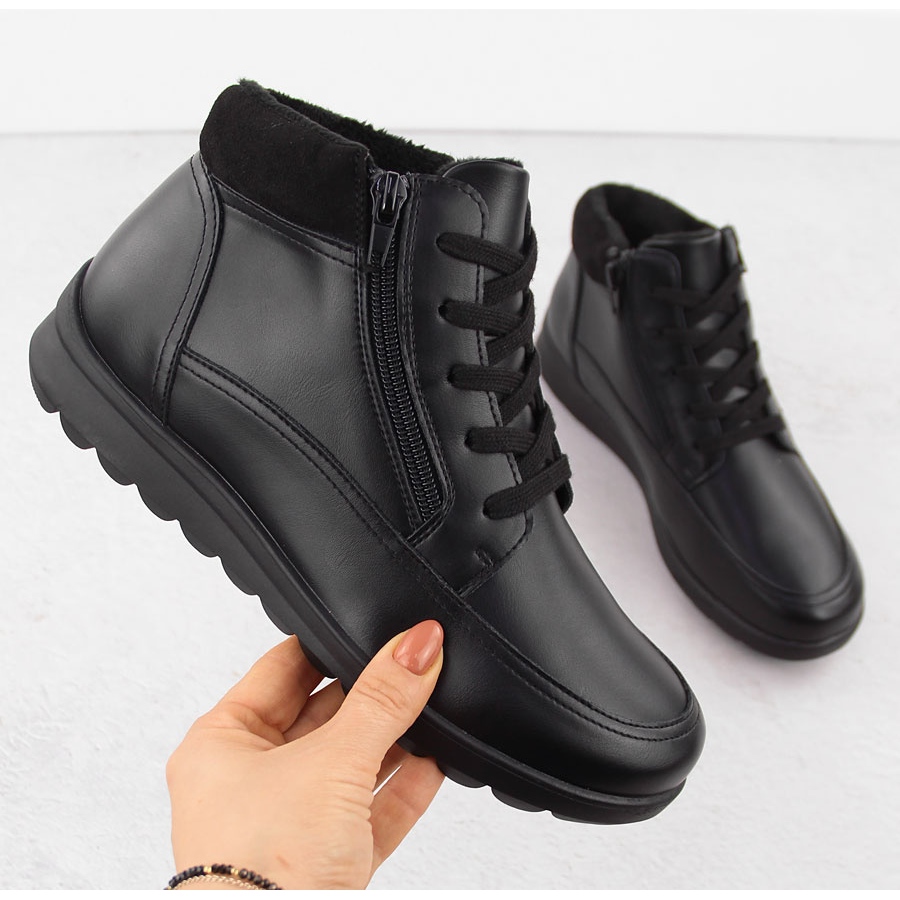 The boots are insulated with a delicate fabric imitating fur, which makes them a great choice for cold days. Thanks to two slider, putting on shoes becomes easier and more convenient, and the round nose adds a classic character. A flat heel with a height of 2 cm guarantees the comfort of wearing, and the height of the upper reaching 10 cm by the ankle provides adequate support for the foot.