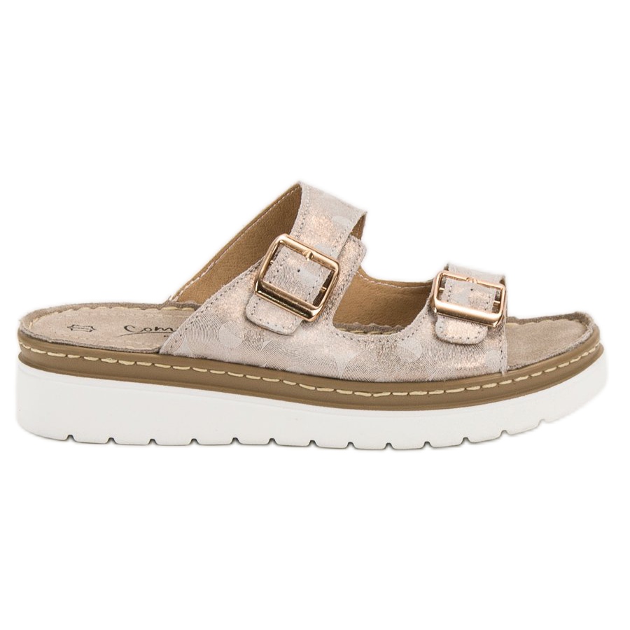 Thanks to the slide-on fastening, putting on and taking off the flip-flops is quick and convenient. The synthetic sole with tread provides good grip, which increases safety when moving. The platform height of 4 cm makes the flip-flops not only comfortable, but also adds a subtle charm to every step.