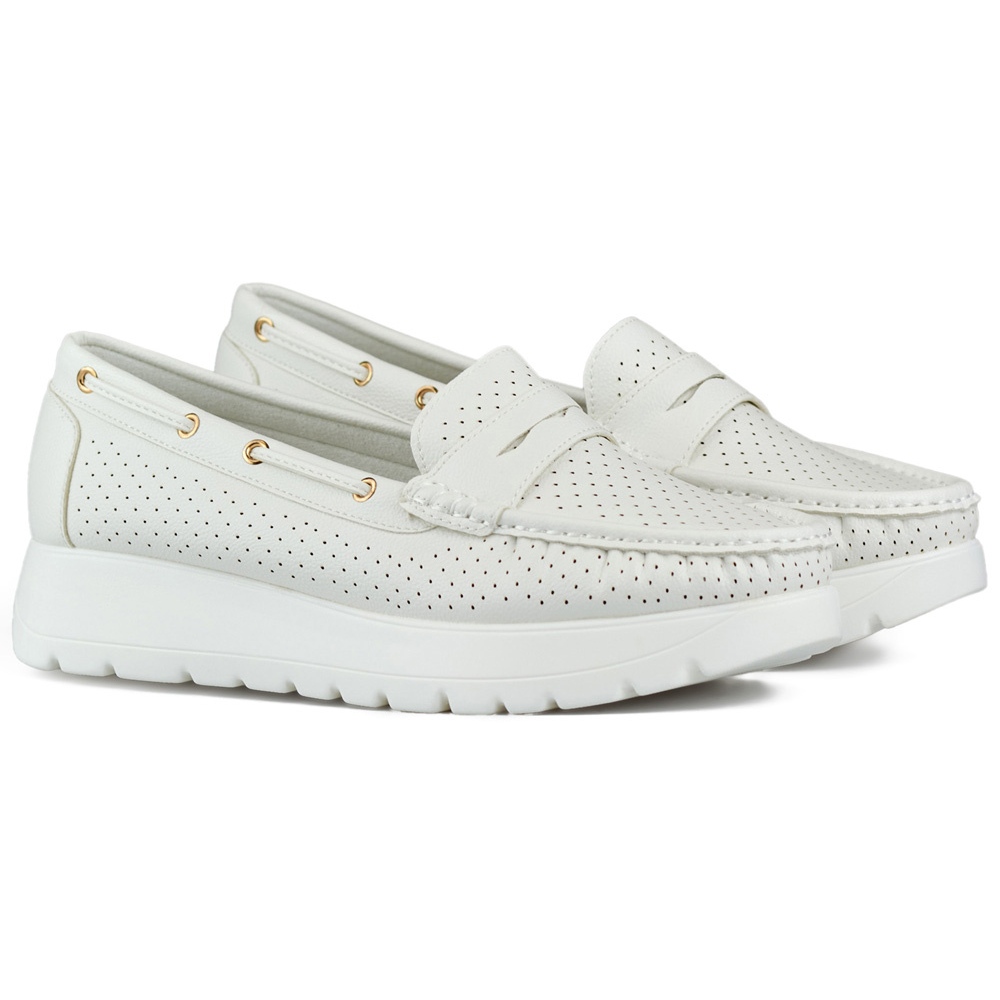 Do not wait any longer - choose comfort and style with openwork white moccasins that will certainly become a favorite element of your wardrobe!