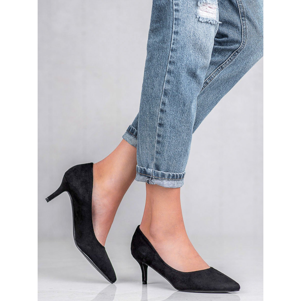 Made of eco-friendly suede leather, the pumps are characterized by an elegant, minimalist design without a pattern, which makes them a great match for a variety of styles - from flowing dresses, through classic skirts, to casual jeans. Thanks to the heel height of 6 cm, you will feel confident in every situation, whether at a family party or an evening party.