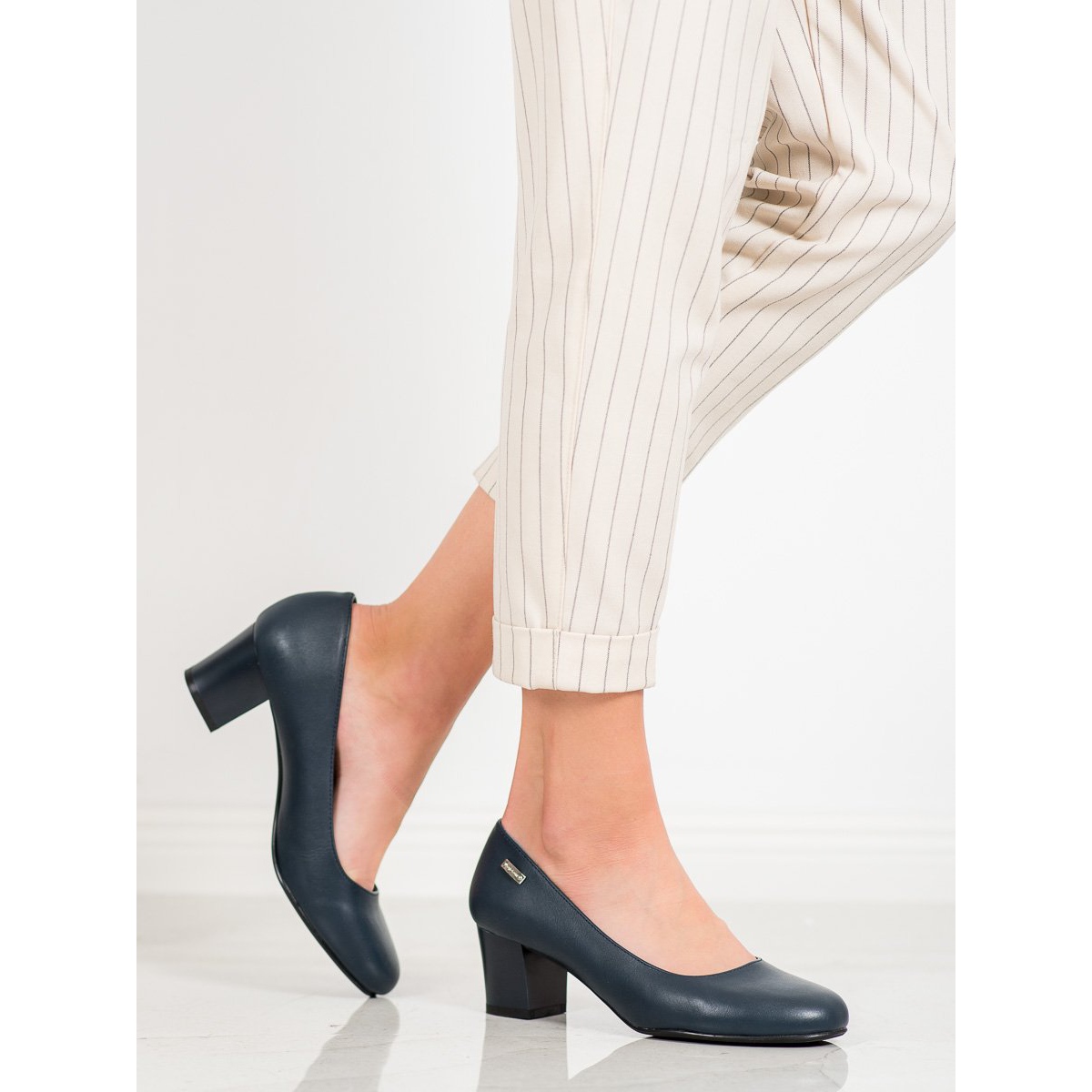 Discover elegance at its best with the Sergio Leone women's pumps in an extraordinary blue color. These classic shoes, made of high-quality ecological leather, combine style and comfort, perfectly adapting to the anatomical shape of the foot. The solid 5.5 cm block heel guarantees stability with every step, making them a great choice for special occasions and everyday wear.
