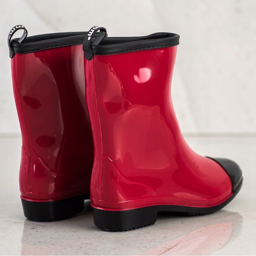 Pay homage to fashion and functionality with SHELOVET Wellington boots in an intense red color! These stylish and comfortable women's Wellington boots are the perfect solution for rainy days. Made of high-quality rubber, they are characterized by a shiny upper and an elegant black toe, which create an attractive contrast.