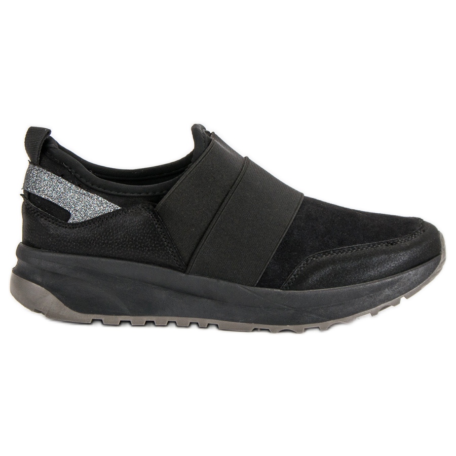 Looking for the perfect shoes for warm days? Comfortable slip-on sneakers from Ideal Shoes in classic black are a great choice! These stylish women's shoes, made of ecological suede and ecological leather, will provide you with not only comfort, but also a fashionable look.
