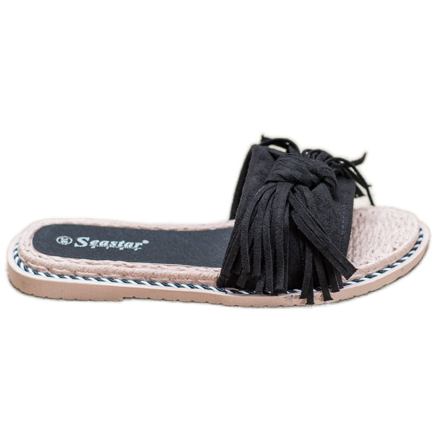 Seastar Comfortable Flip-Flops with Fringes in black are a must-have in every woman's wardrobe for spring and summer. Their modern design with subtle fringes makes these flip-flops fit perfectly into current fashion trends. The black color and minimalist style ensure that these elegant flip-flops will match many styles, from casual to more elegant.