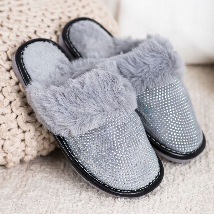 The slippers are decorated with beautiful zircons, which give them a unique shine, and the gray color makes them universal and suitable for many styles. Thanks to the round toe and low height, the slippers are suitable for women of all ages, both for everyday use and when relaxing at home.