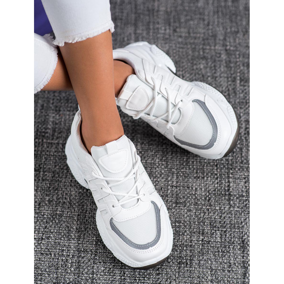 SHELOVET sneakers are the perfect footwear for any occasion – from city walks to everyday outings. Thanks to their universal white colour, they match practically any styling, and the round toe guarantees comfort when worn.