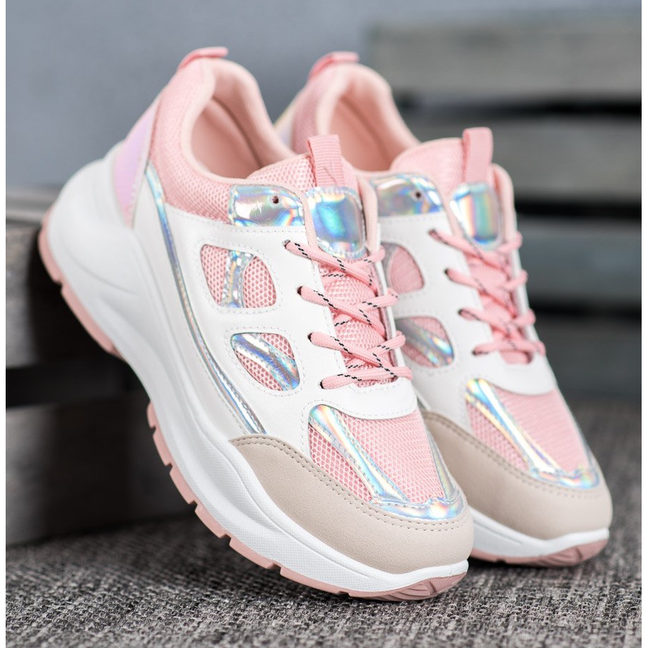 Details: SHELOVET Comfortable Sneakers With Mesh white pink multicolored