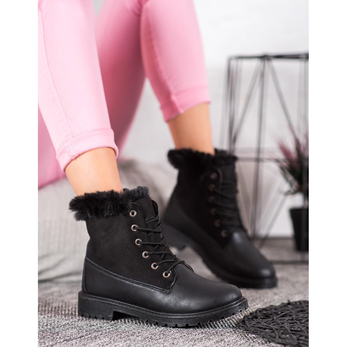 SHELOVET hiking boots are the perfect footwear for colder days, combining style and comfort. Made of high-quality leatherette and ecological suede, they look very elegant, and their black color makes them match almost any styling.