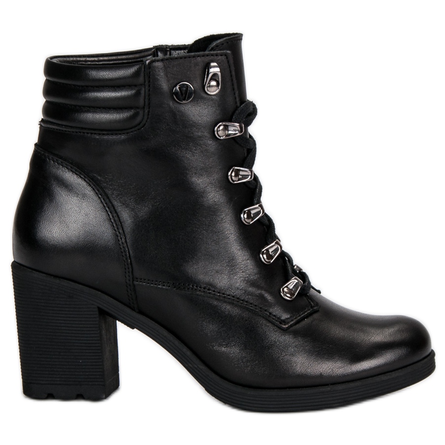 Comfortable Vinceza black heeled ankle boots are a great choice for women looking for stylish and functional footwear for fall and winter. Made of high-quality natural leather, they are characterized by an elegant look and comfort of wearing. Their unique, casual design makes them ideal for a variety of styles.