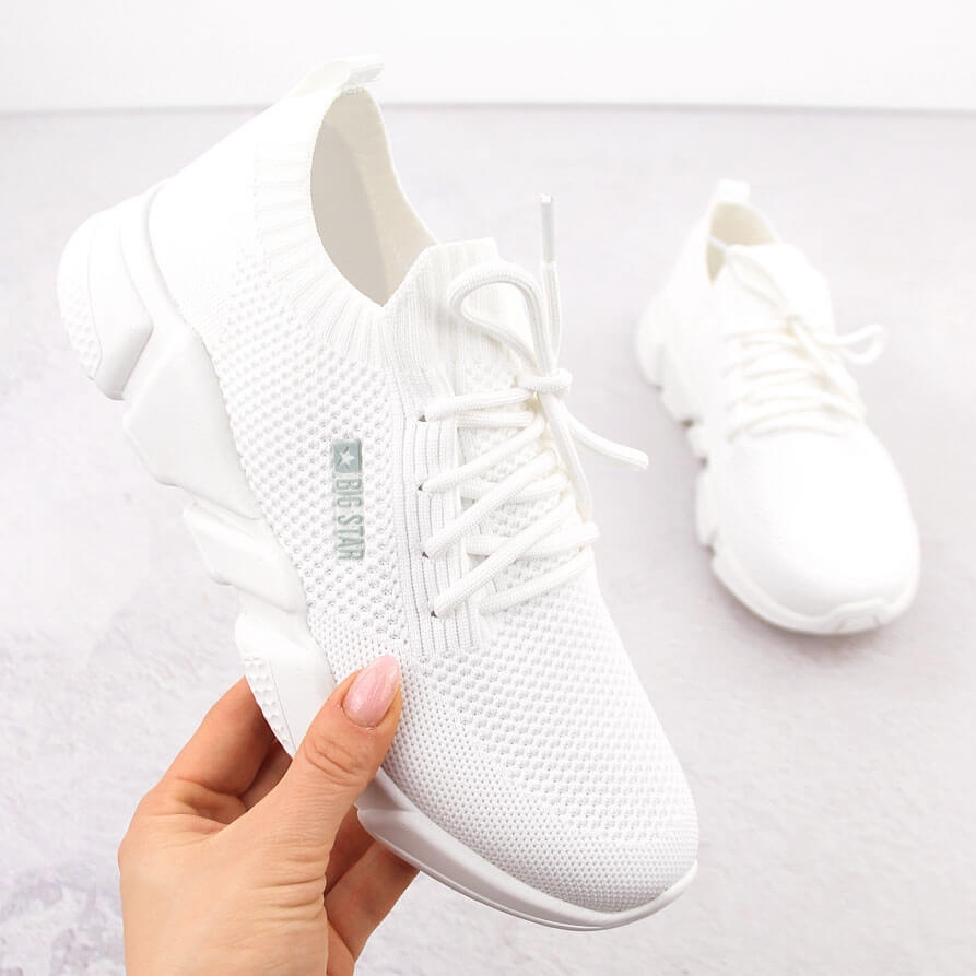 We present excellent white women's sports shoes from the Big Star brand, the JJ274268 model. These comfortable sneakers have been designed for active women who value both style and comfort.