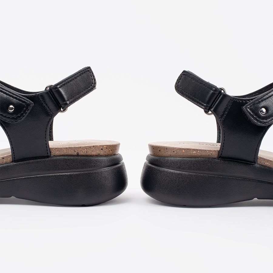 We present Goodin women's sandals in an elegant black color that combine comfort and style, perfect for summer days. Made of high quality materials, sandals have an outer part of ecological leather and a natural leather insert, which ensures excellent ventilation and wearing comfort.