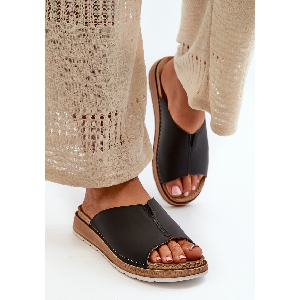 Comfortable women's inblu gs0003i1 leather slippers in black is an ideal proposition for women who value comfort and fashionable appearance. Made of high quality materials, these flip flops combine elegance and functionality. The profiled insert of soft, natural leather adapts to the anatomical shape of the foot, ensuring extraordinary comfort of wearing both in everyday stylizations and during walks.
