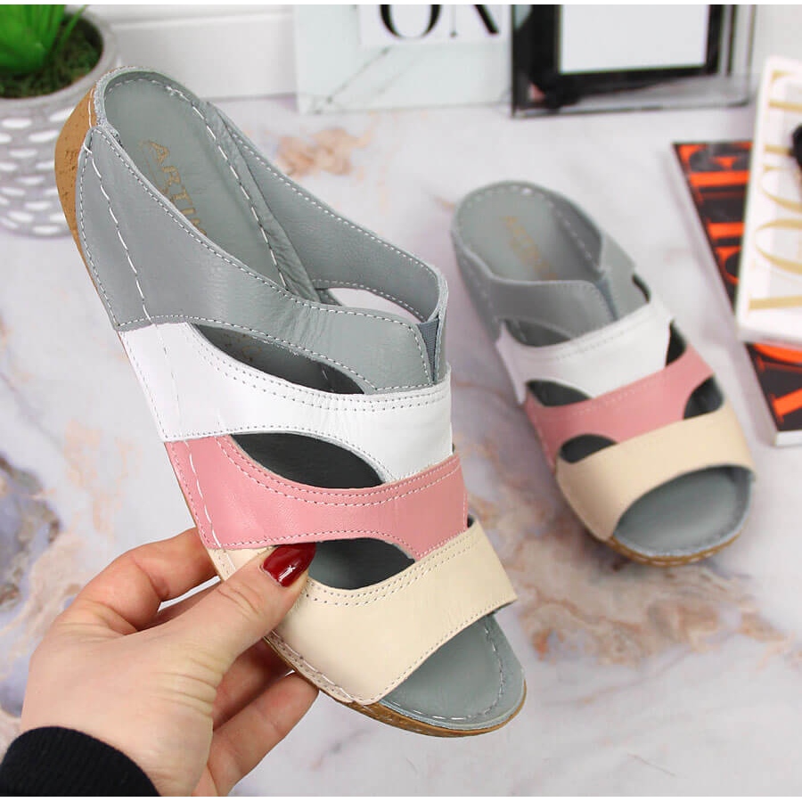 ARTIKER Comfortable women's leather slippers in multicolour Artiker grey multicolored