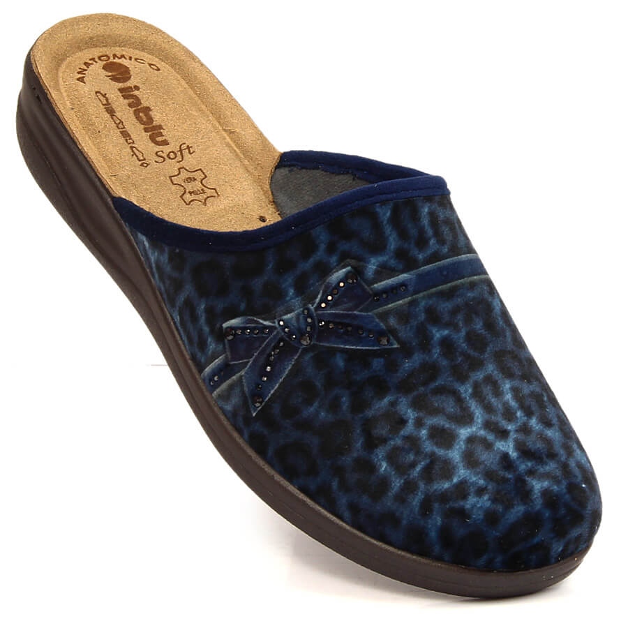 Details: Comfortable women's navy blue Inblu slippers with leopard print