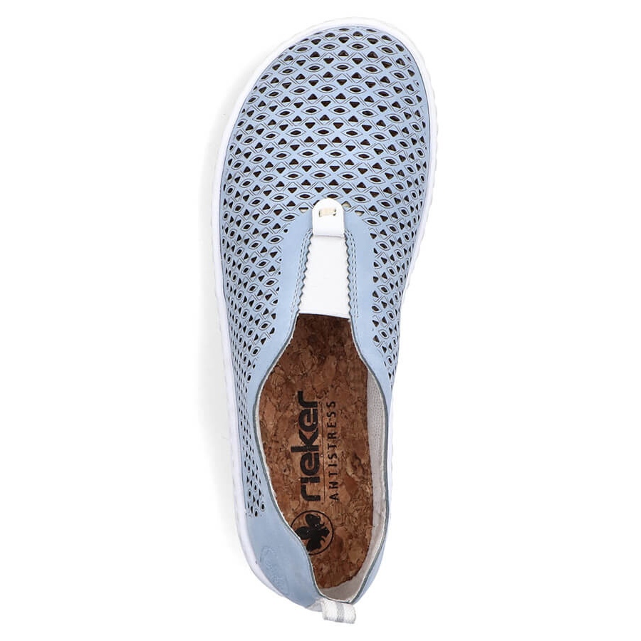 Details: Comfortable women's openwork slip-on shoes, blue Rieker 52866-10