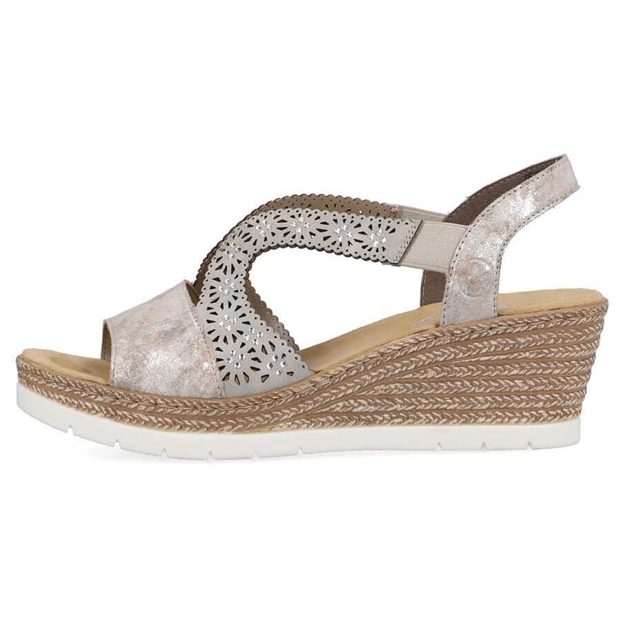 Details: Comfortable women's slip-on wedge sandals multi Rieker 61916-91 beige