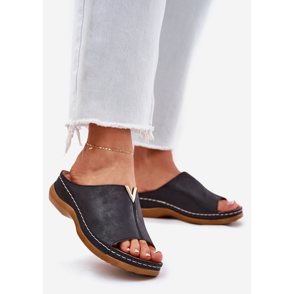We present elegant women's flip -flops on an Evento wedge in a timeless black color that combine style and unique comfort. These flip flops, made of high quality eco leather, are the perfect choice on warm days when you want to look fashionable, but at the same time you care about comfort.