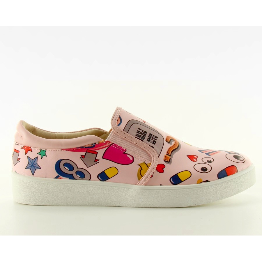 Comic Slipons 6120 Pink - a fresh, energetic accent for everyday styling. Pink slip-ons with a colorful, comic book pattern attract attention and add character to both sports and casual looks. Made of full-grain eco-leather, with a textile interior and a natural leather insert - a light and comfortable model for every day.
