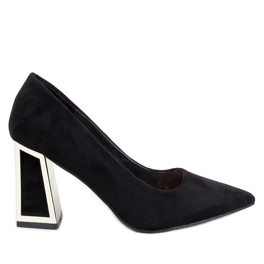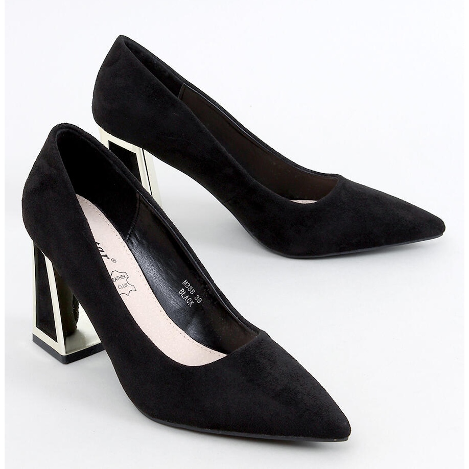 Discover the elegance and convenience of Constie Black pumps. These suede women's shoes with a geometric heel 9 cm high are the perfect combination of style and comfort. The shapely cut in combination with gold inserts catches the eye and adds a unique character to any stylization.