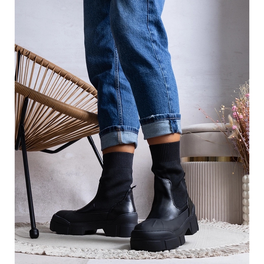 Elegant, universal conta boots are a perfect complement to everyday, urban stylizations. Decorative pressings on the nose give them character, and the classic black colors make them fit many sets.