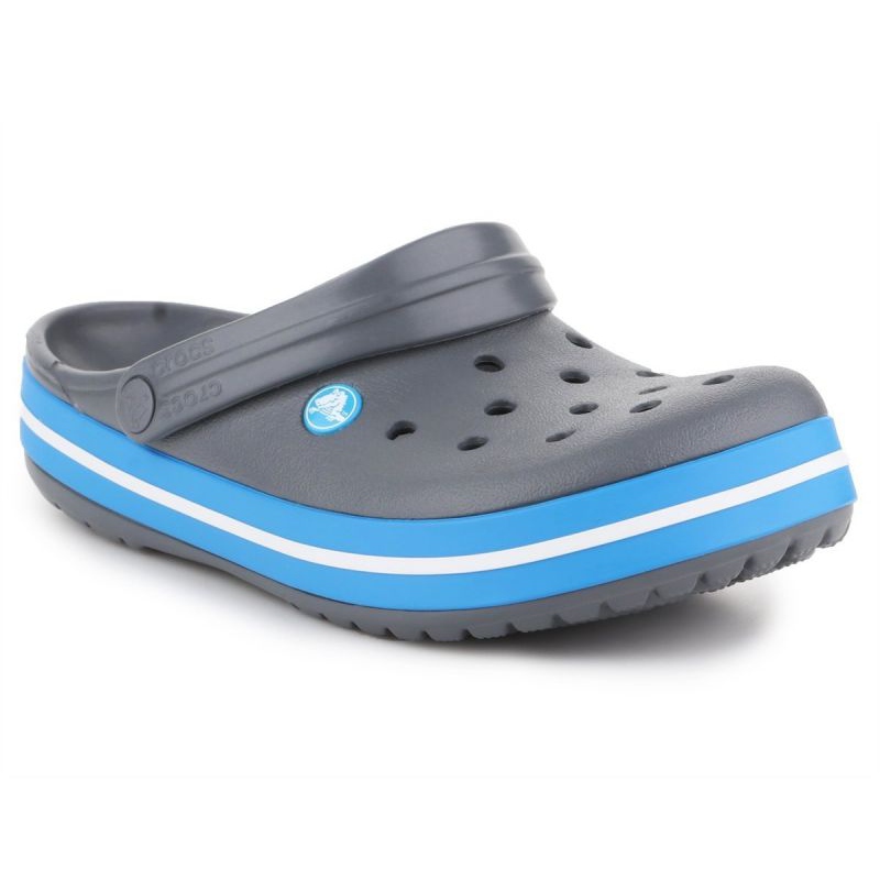 The Crocs Crocband women's slippers in 11016-07w are a light and practical proposition for the summer-for the beach, swimming pool and for everyday use. Their classic, minimalist design in gray with a blue accent matches many styles, and the characteristic heel strap ensures more reliable foot hold.