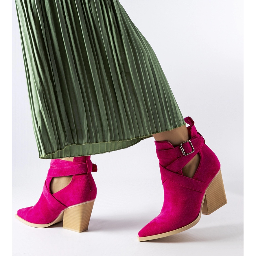 Their innovative design, set on a solid post, not only ensures comfort of wearing, but also adds character to any styling. The high 8 cm heel makes every woman feel elegant and confident on any occasion. The pink color in the Fuxia shade attracts attention and makes the ankle boots perfectly match both casual and more formal outfits.