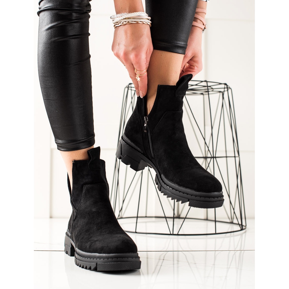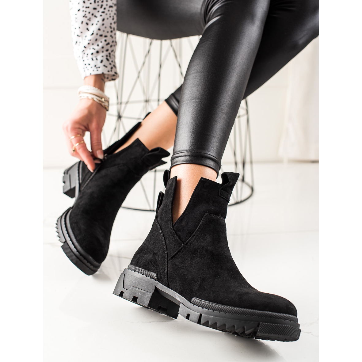 Looking for shoes that perfectly combine fashion and comfort? Suede workers offer a closed, stiffened heel and a comfortable, round toe, which ensures stability and comfort of wearing all day long. The height of the upper reaching above the ankle and a soft felt insole make your feet feel comfortable even on colder days, and the insulation provides additional protection against winter chill.