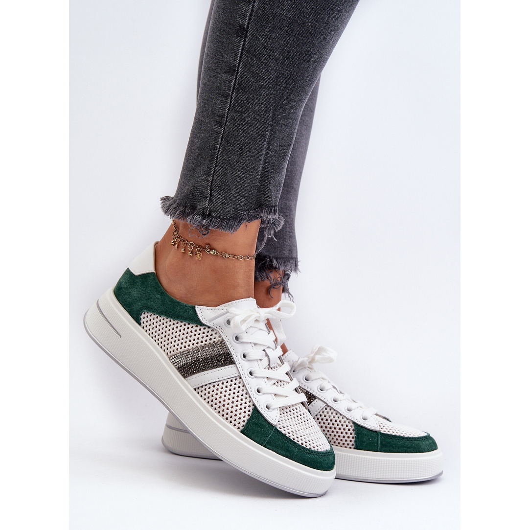 Details: S.Barski D&A Women's Leather Sneakers LR110 Green-White