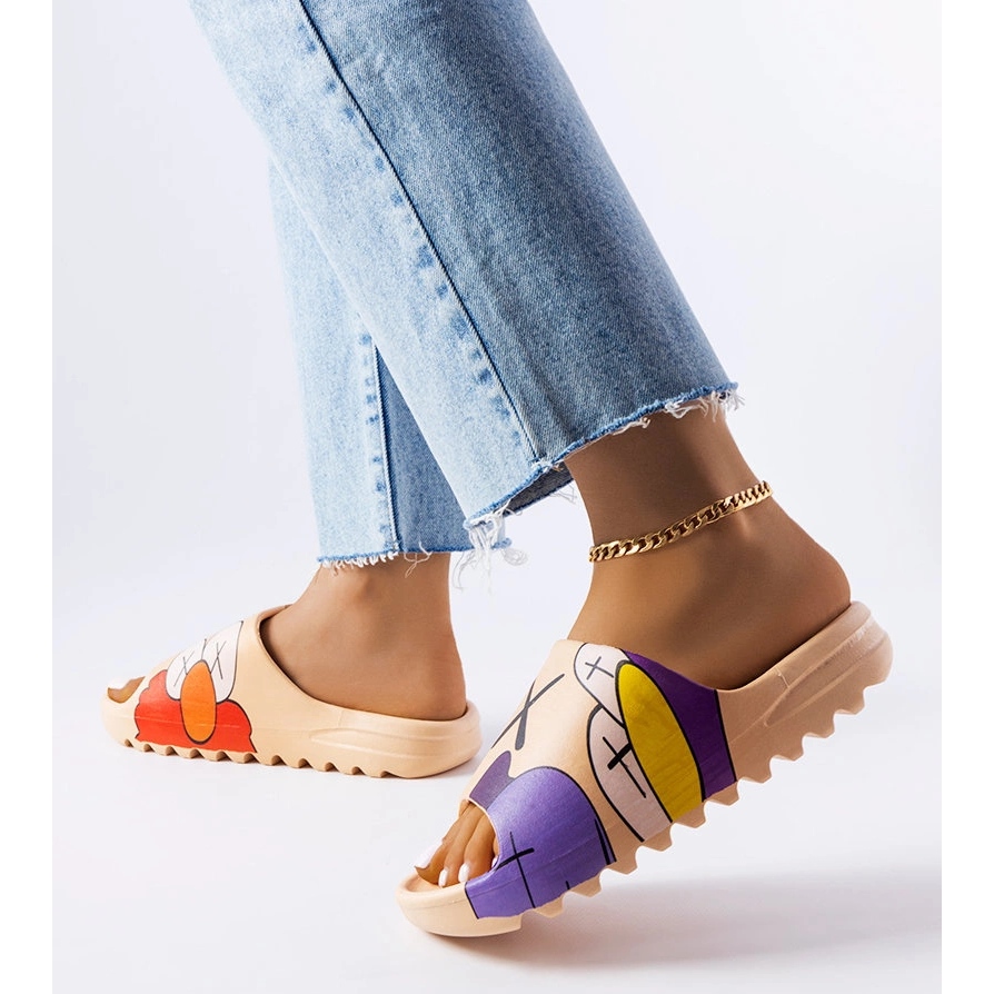 Lindale dark beige flaps with prints - style and comfort for the summer