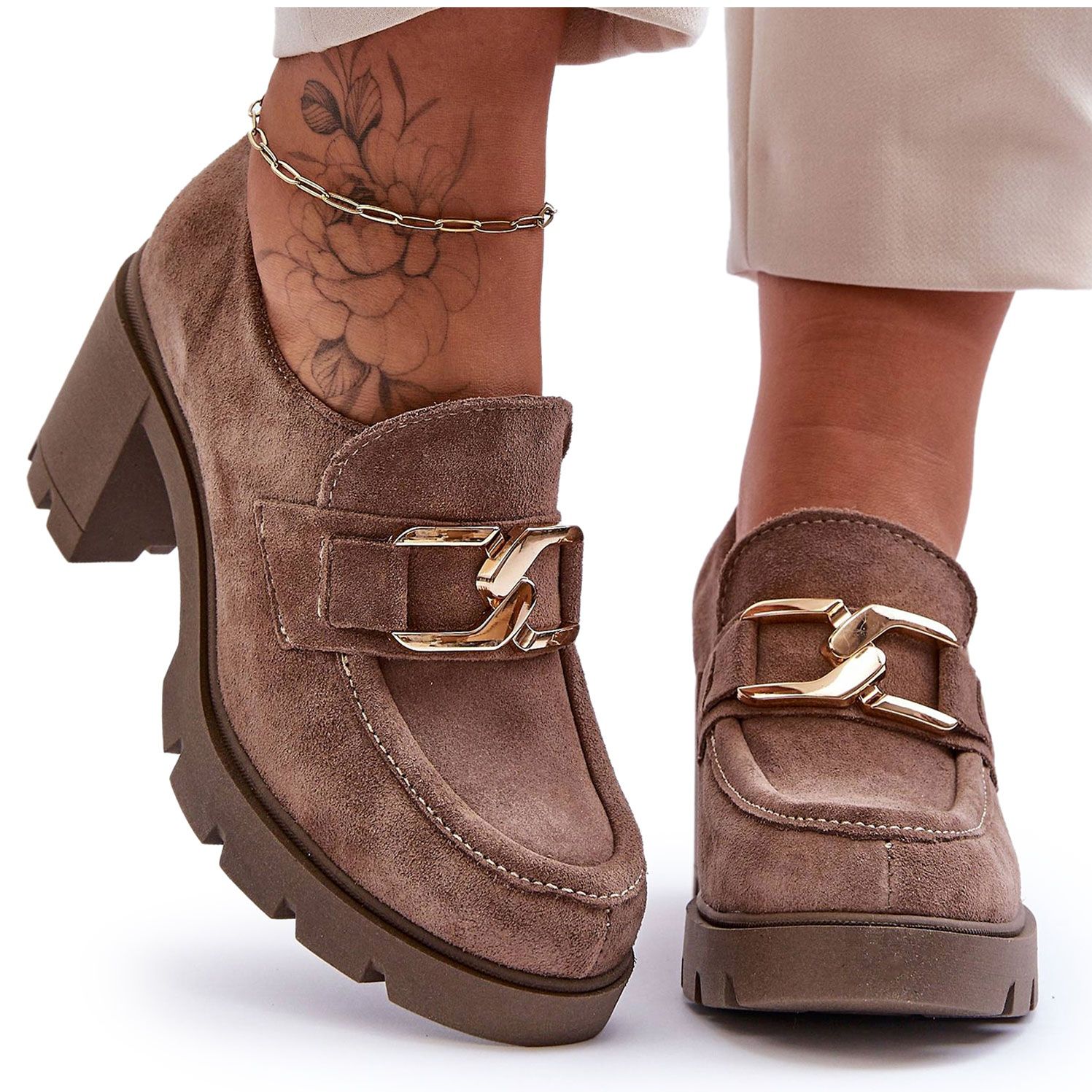 Lemar Lemar Dark beige Harmell elegant shoes on a pillar with a golden ornament