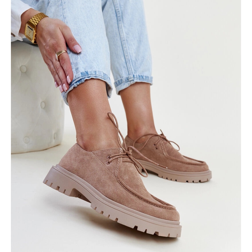 Thanks to a stable, beige rubber sole, you can enjoy a certain step on any ground. The heel height of 3.5 cm adds subtlety, and at the same time does not burden the feet during a long wear. These shoes are a great proposition for spring and summer, fitting into current trends, and their universal khaki color allows you to easily combine with various wardrobe items.