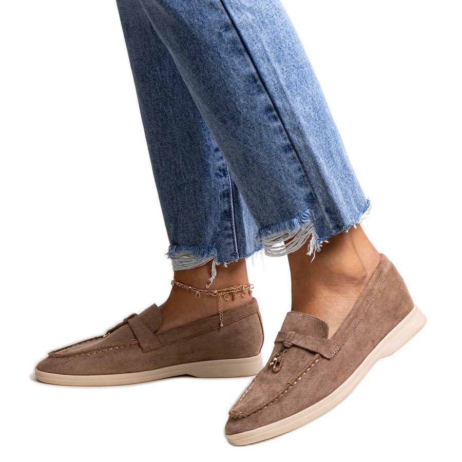 Inna marka Dark brown moccasins with a metal pendant from Fiorano beige