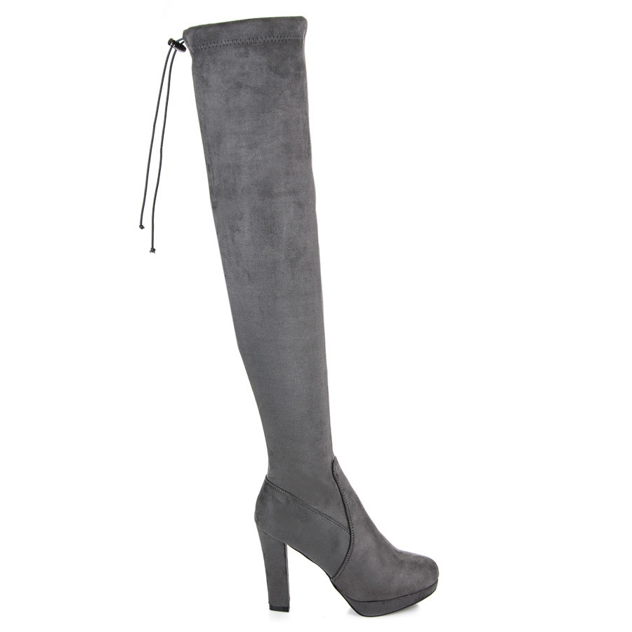 Discover elegance and style with Vices musketeers in a dark grey shade. These unique boots made of ecological, suede leather are the perfect choice to add chic to any styling. The high upper, reaching above the knee, emphasizes the legs and makes them slim, and the classic cut means that these shoes will match both everyday and evening creations.
